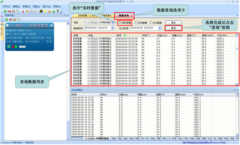 點擊“數據查詢”選項卡,進入到數據查詢界面,將“實時數據”選項選中,然后選擇查詢的起始時間,點擊“查詢”按鈕,可以查詢實時數據。如下圖所示。